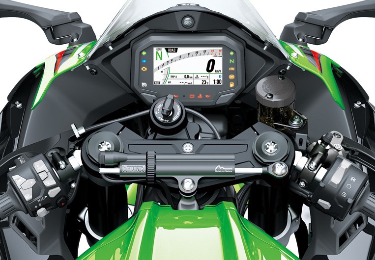 + Conectividade com smartphones. + Controle de Tração Kawasaki Sport (S-KTRC). + Cor e Grafismo esclusivo da Kawasaki Racing Team. + Design aerodinamco com asas integradas. + Função de Gerenciamento de Curvas da Kawasaki (KCMF). + Instrumentação em TFT colorido. + Modo de Controle de Largada Kawasaki (KLCM). + Modos de Pilotagem Integrados. + Piloto Automático. + Quick Shifter Kawasaki (KQS). + Sistema ABS inteligente Kawasaki (KIBS)